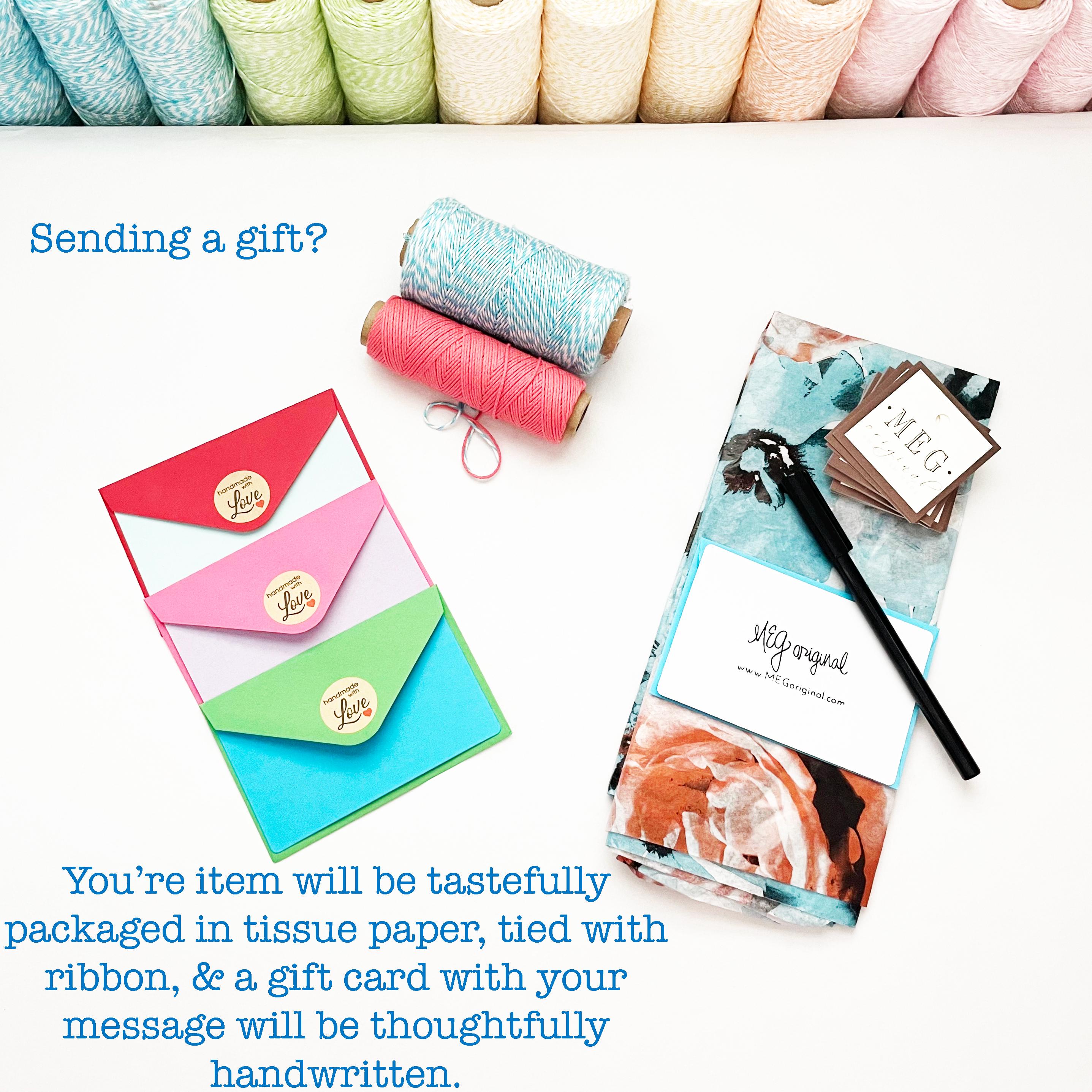 In order to fulfill your order completely, we (MEG Original) require a name and address. Due the customized nature of our products, we also request an e-mail address or phone number should any questions arise regarding the design and fulfillment of your purchase. At no time will customer information be shared with any outside entity, company, or person(s).