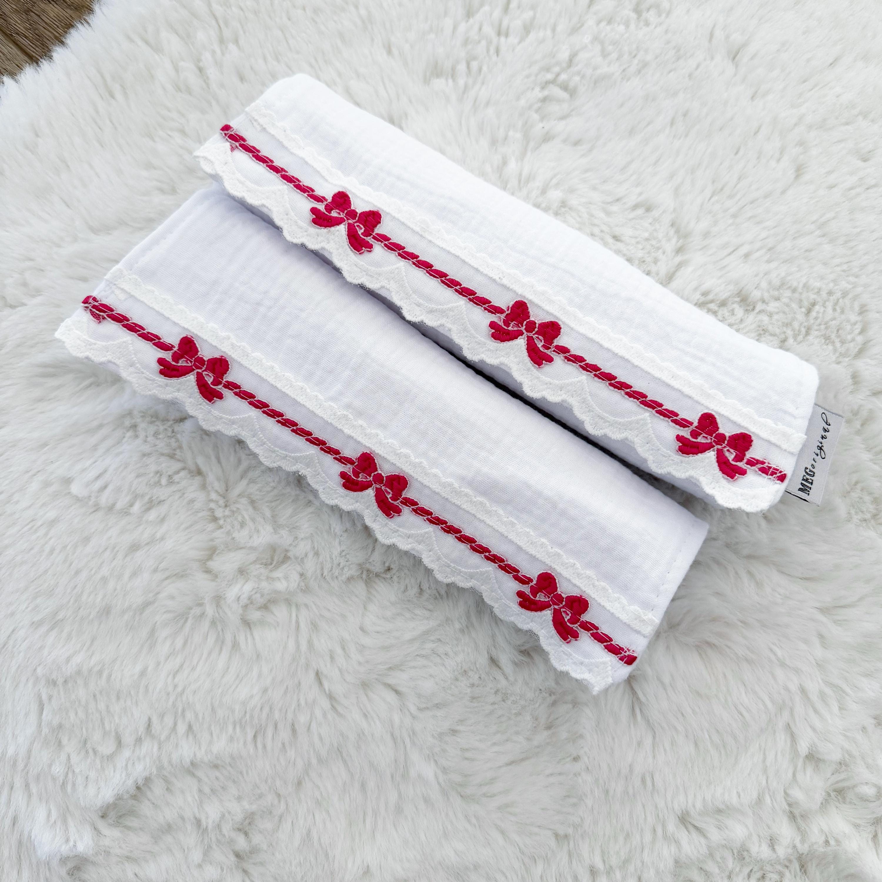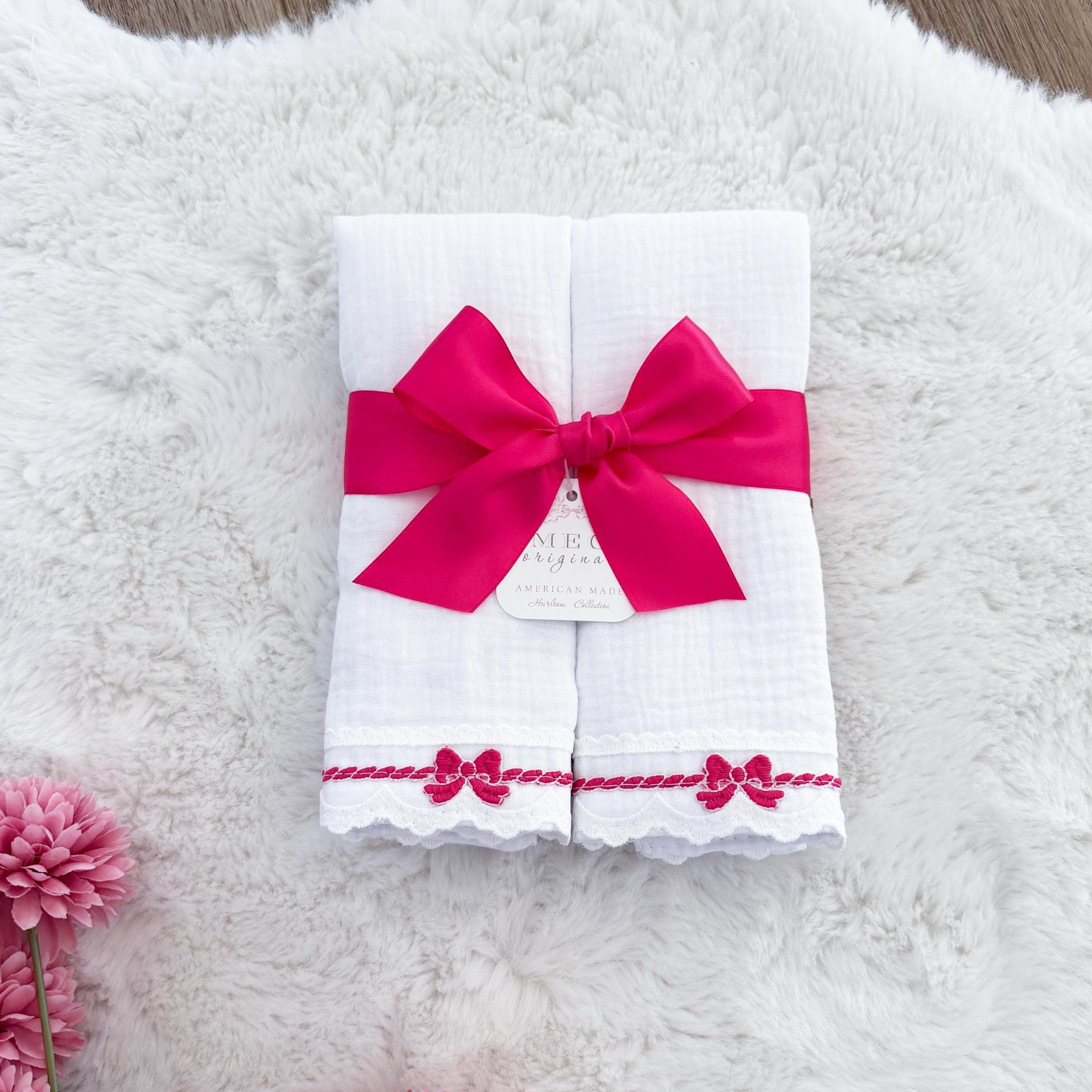 Set of 2 beautiful burp cloths in white & hot pink.