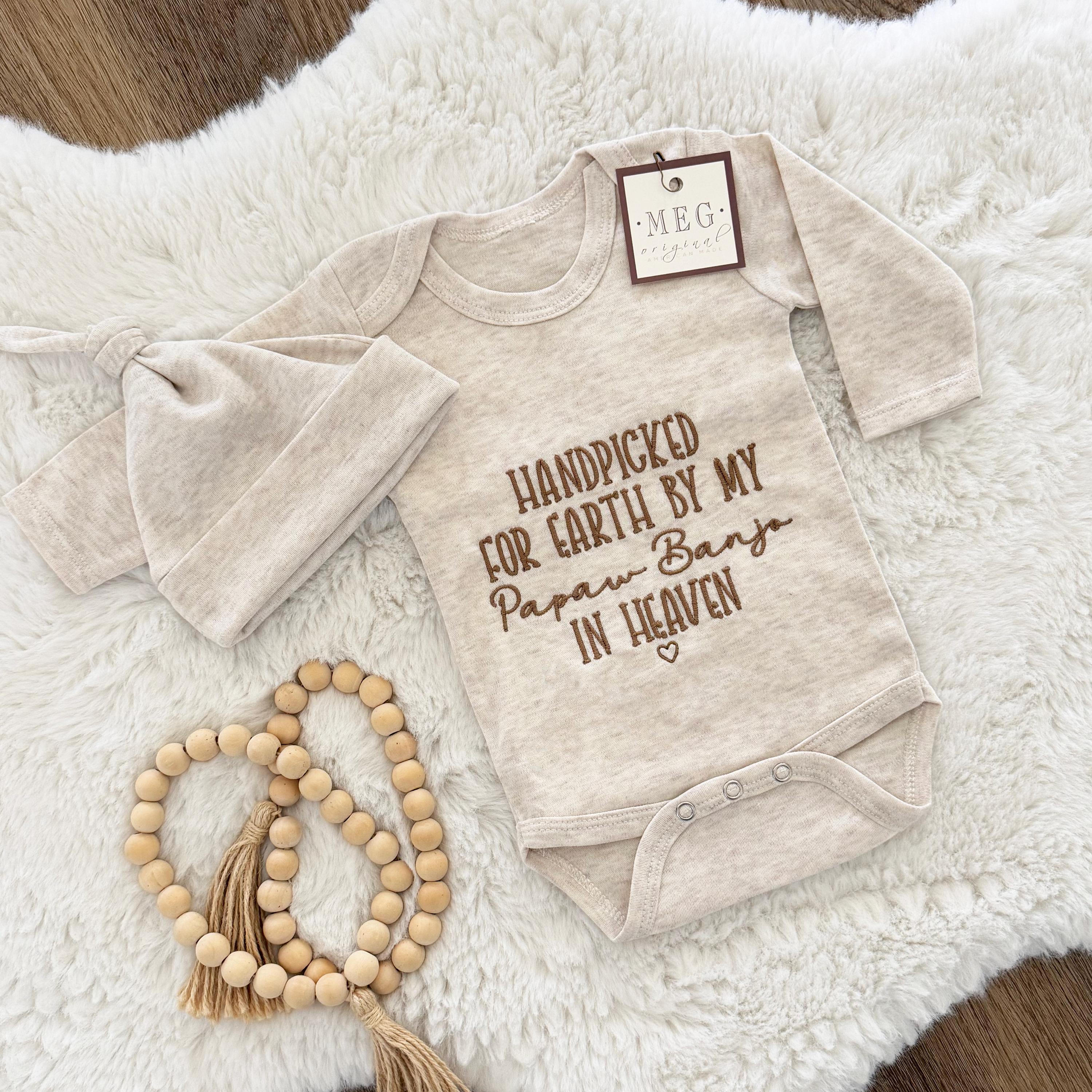 This sweet infant bodysuit tugs on the heart strings by paying homage to our special loved ones who are no longer with us.