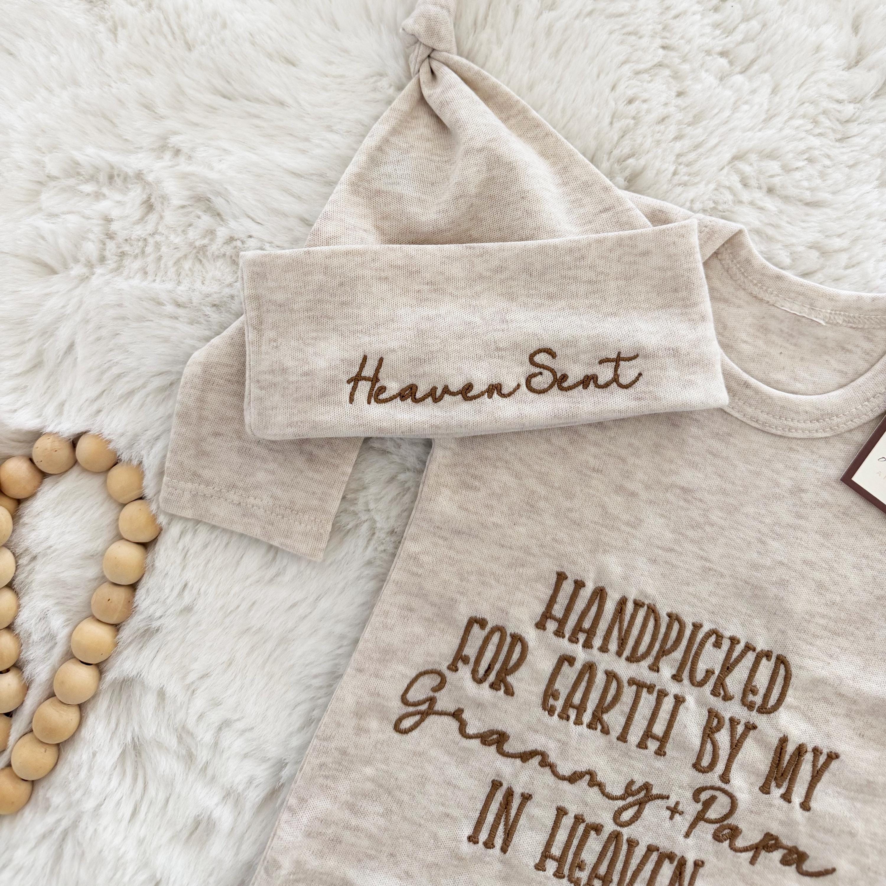 Matching Cap embroidered with "Heaven Sent" is available separately or as a set.