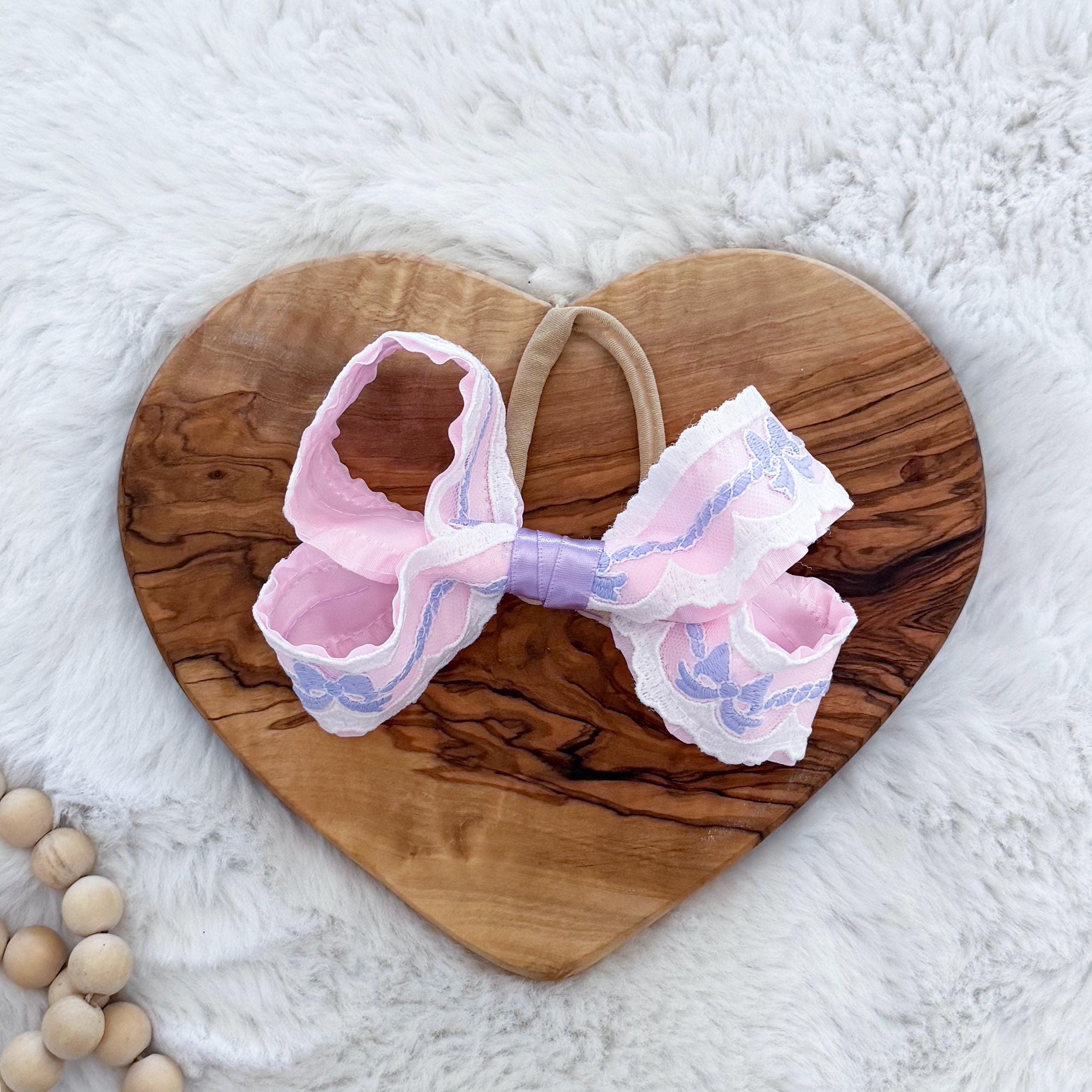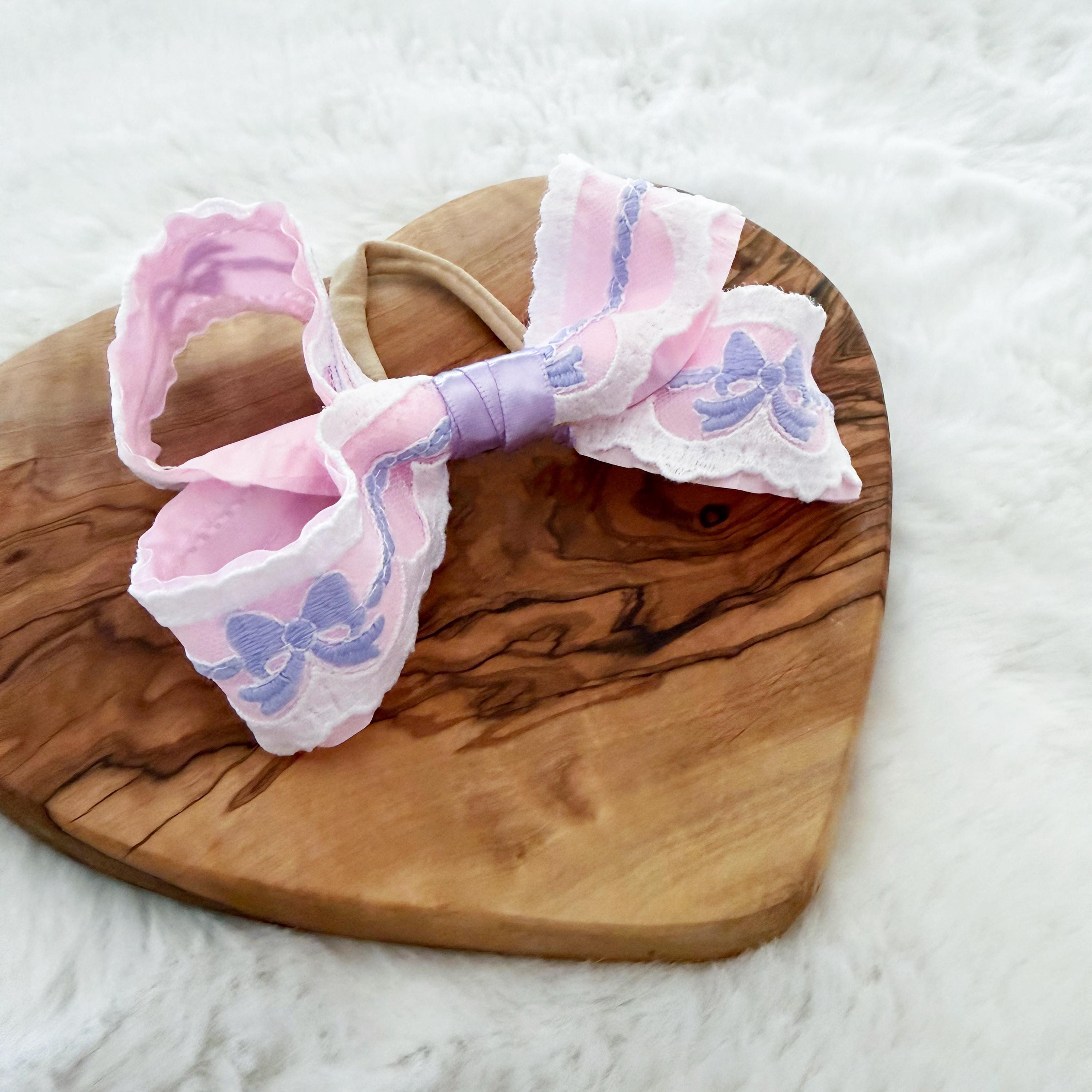 Bow is attached to a super soft & stretchy nylon headband to insure comfort for baby's delicate head.